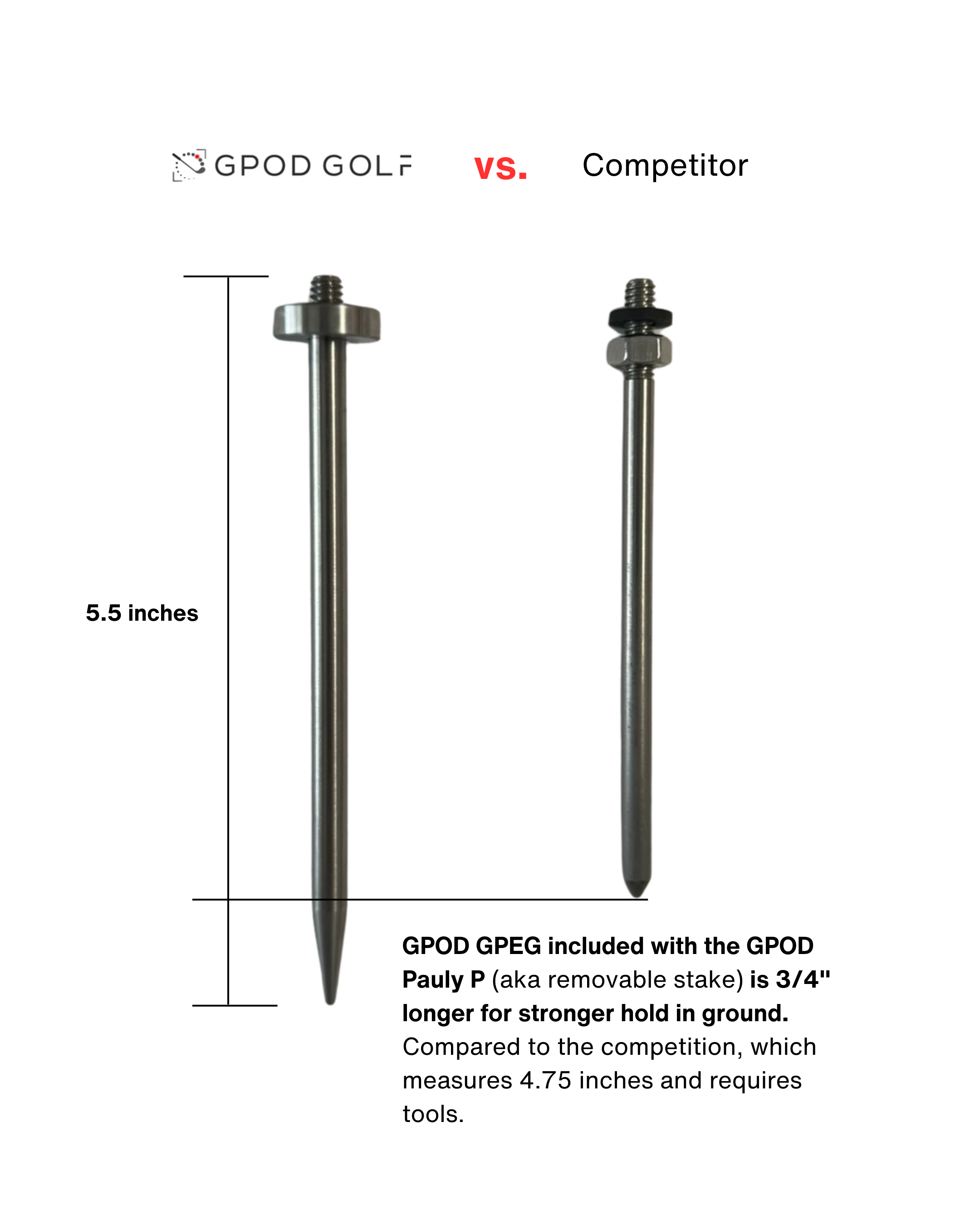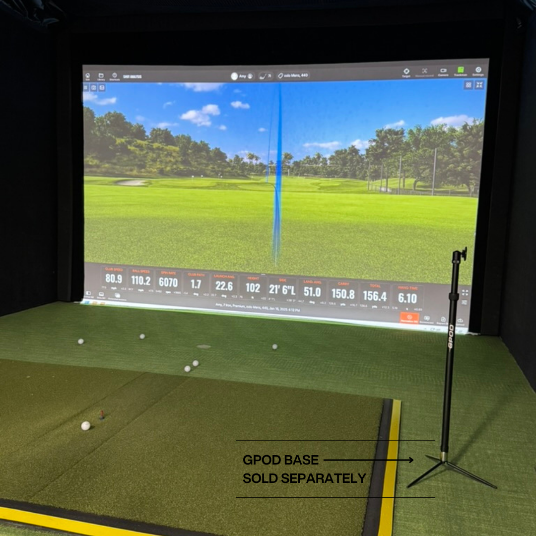 No matter the surface, whether you're on the driving range or in your home simulator, the Pauly P provides several options with unwavering stability using the ¼” insert at the base of the monopod. The included 5.5" stainless steel GPEG anchors the stand firmly in the ground for outdoor use.  The 2" x 2" steel GPLATE with 4 screw holes allows for semi-permanent mounting indoors.  And the addition of a GPOD Base (sold separately) can be attached, turning the monopod into a tripod for use indoor and outdoor on any surface.